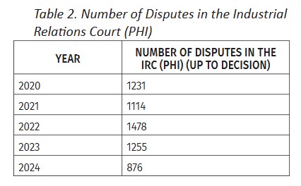 On the other hand, it was also found that the number of disputes that were submitted to and resolved by the Industrial Relations Court over the past five (5) years is still considered high. This indirectly indicates that there are still various weaknesses in the current non-litigation mechanisms for resolving industrial relations disputes in Indonesia.